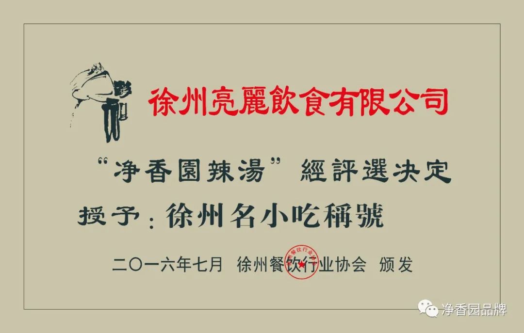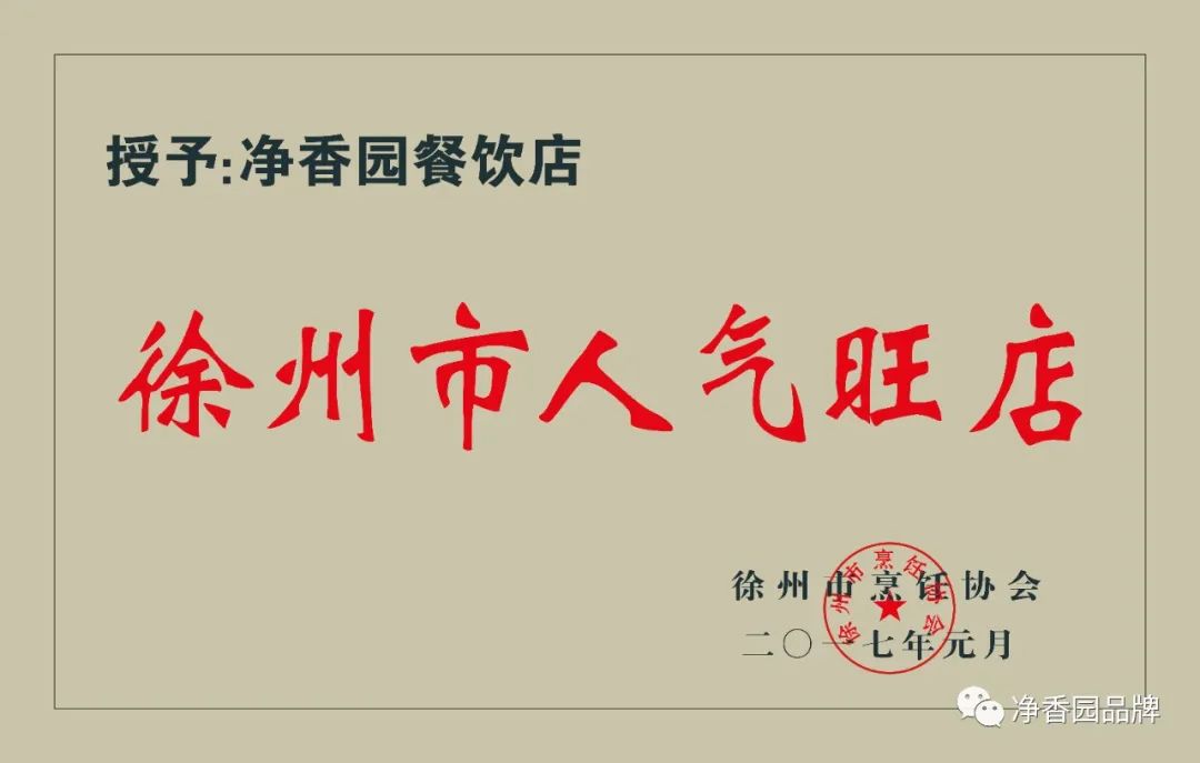 凈香園嚴格把控食品安全,提升口味品質,先后獲得以下榮譽:“星級誠信單位”、“徐州名小吃稱號”、“徐州市最佳餐飲連鎖品牌”、“徐州十佳小吃”、“江蘇名小吃””等榮譽稱號。